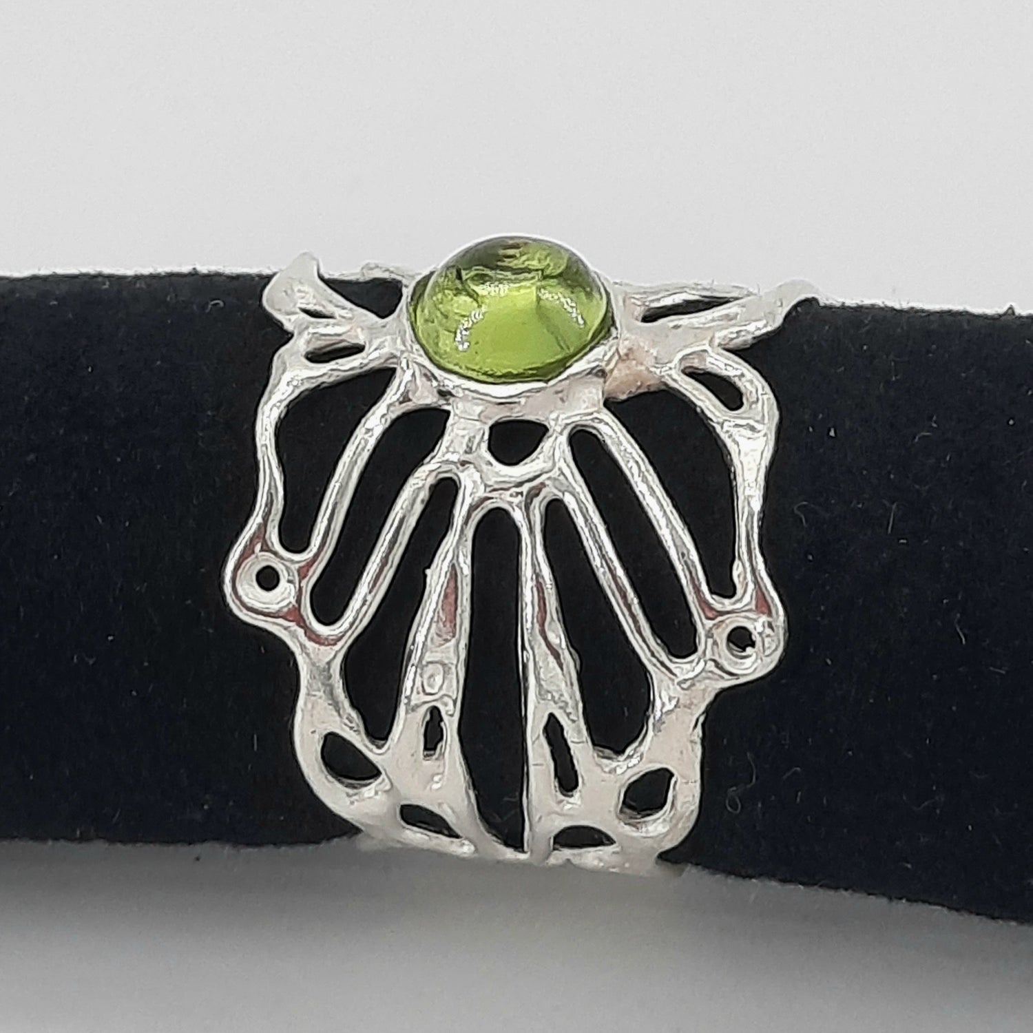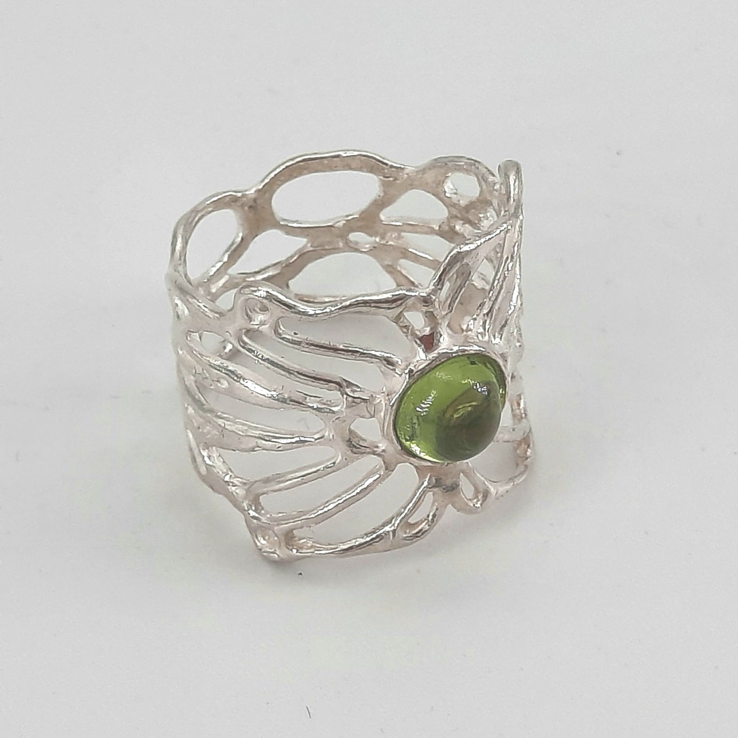 Questo anello fa parte della linea Libellula, caratterizzata da linee fluide e leggere, di ispirazione Liberty, vivacizzate dalla presenza di peridoto, ametista o agata verde.