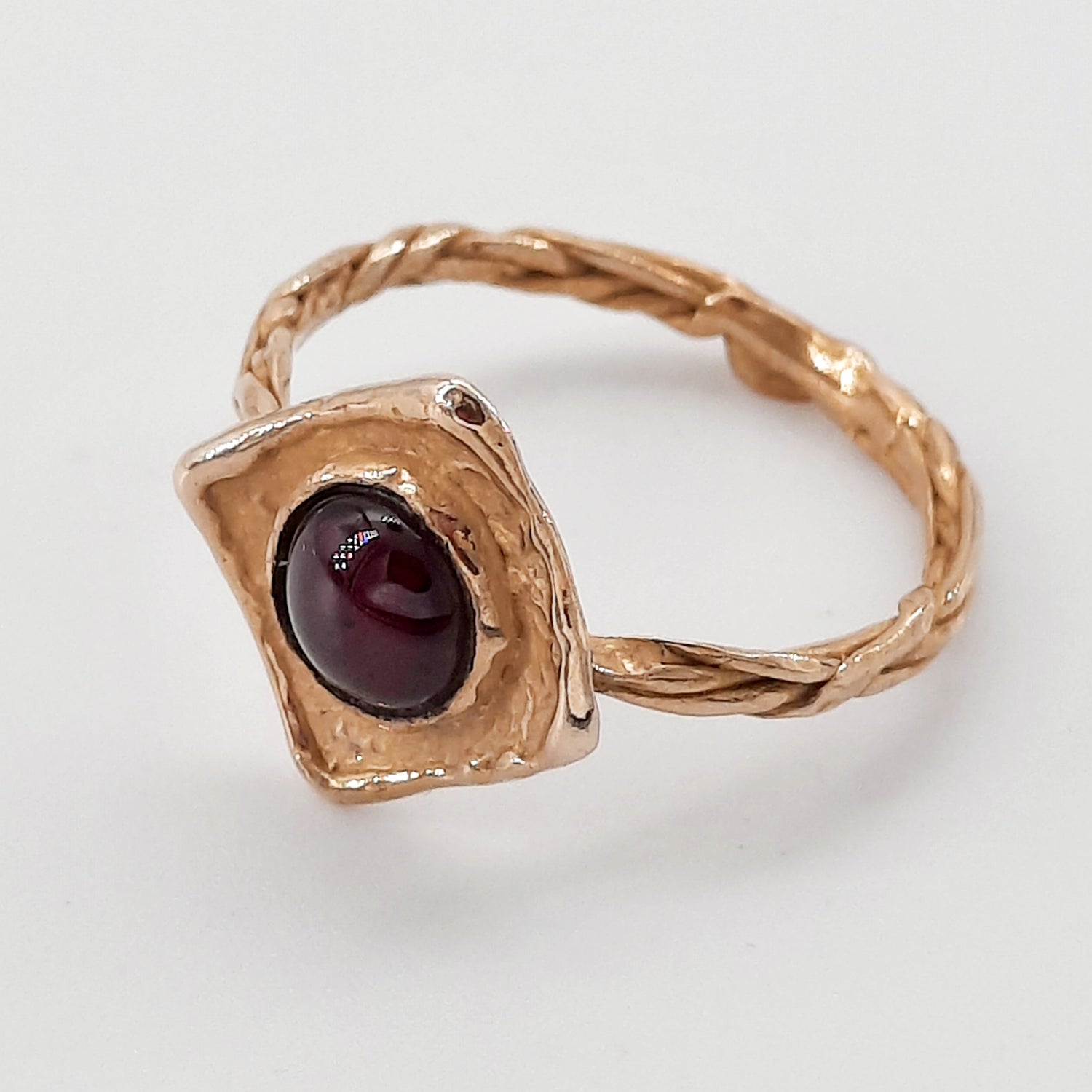 Propongo questo anello in quattro versioni: Bronzo con granato, argento con onice, argento con agata blu. E argento con agata verde.
