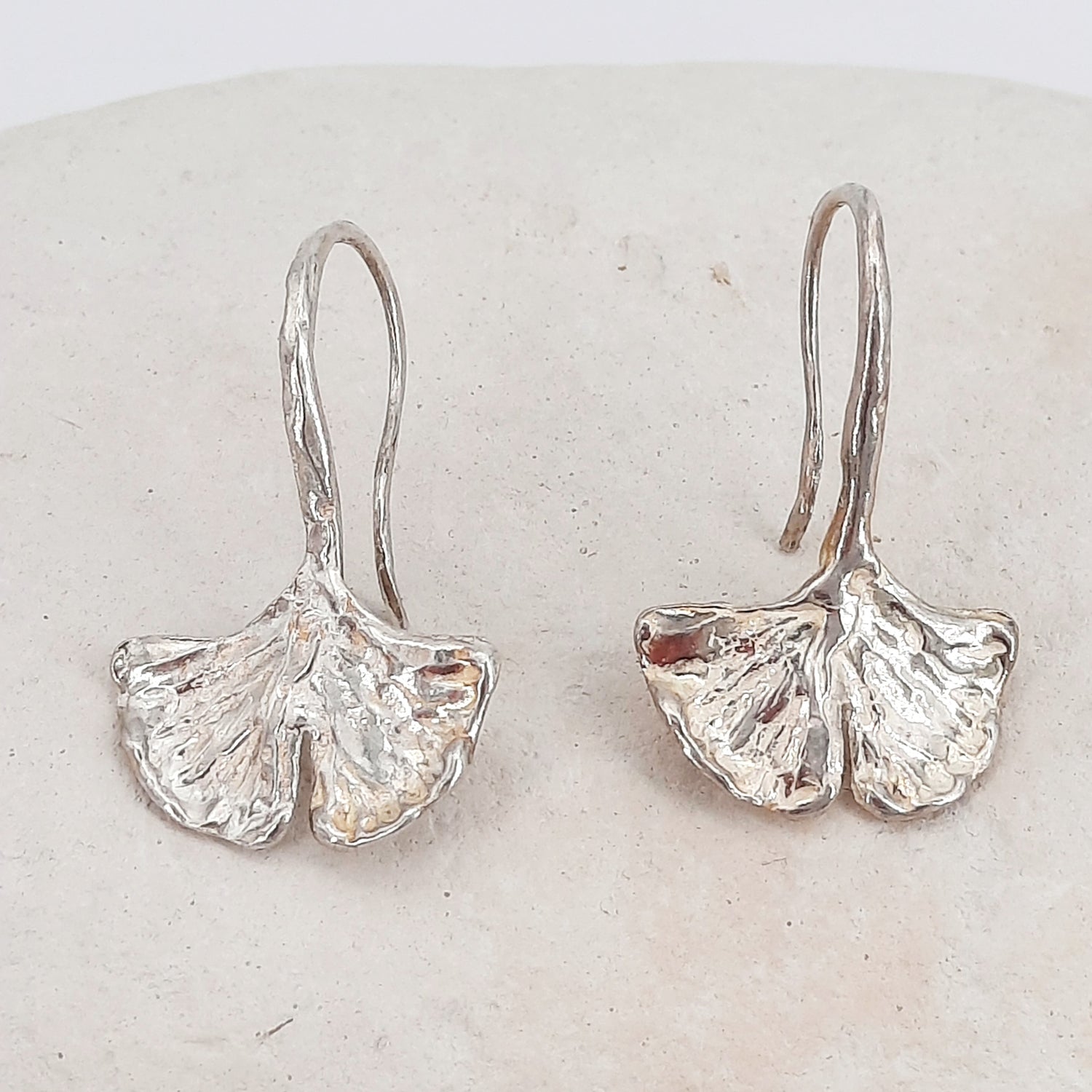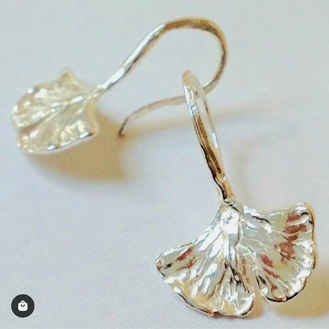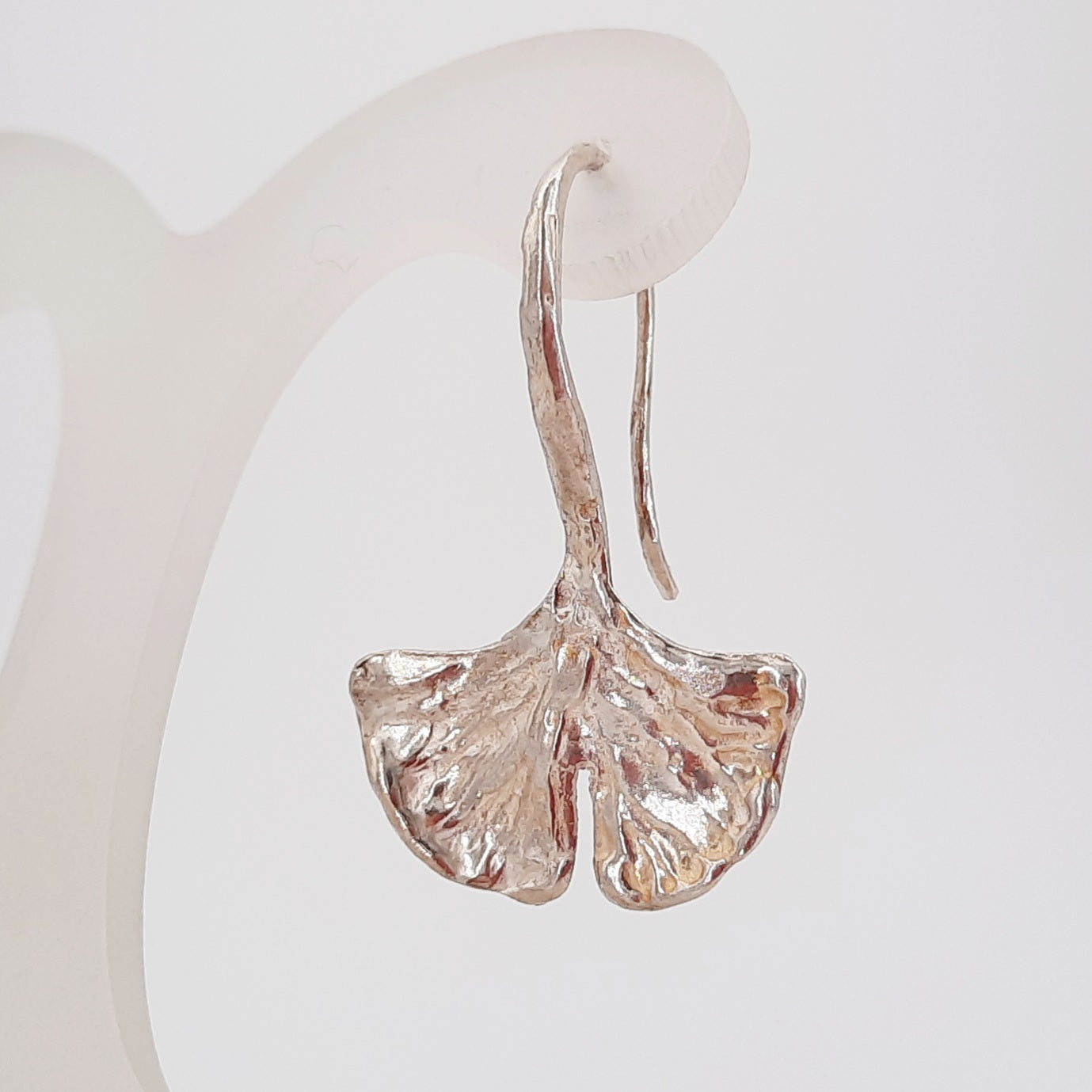 Ho realizzato questi orecchini a mano usando l'antica tecnica della cera persa. Il motivo ornamentale è rappresentato da foglie di Ginkgo Biloba, un albero molto antico dal punto di vista evolutivo: praticamente un dinosauro vivente del mondo vegetale. Il Ginkgo è un simbolo di pace, di tenacia e di longevità.