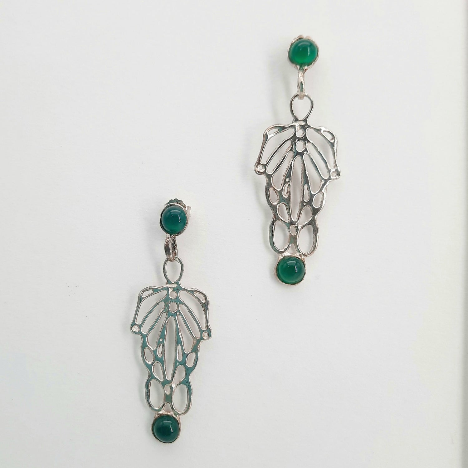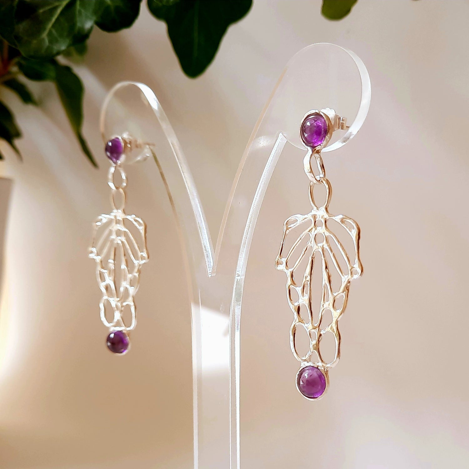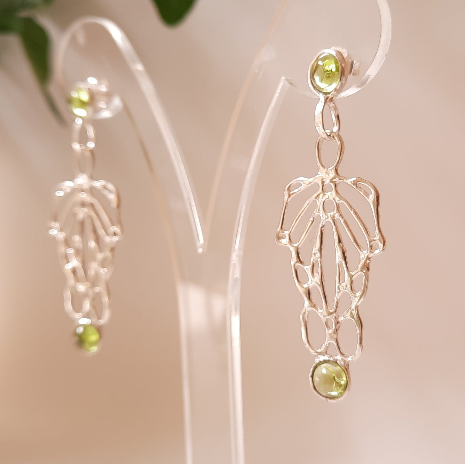 Orecchini artigianali realizzati utilizzando l'antica tecnica della microfusione a cera persa.